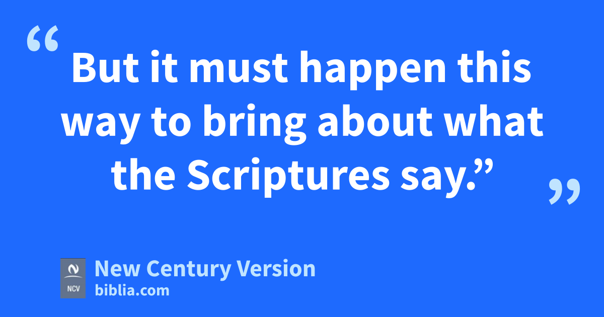 52 Jesus said to the man, “Put your sword back in its place. All who use swords will be killed with swords. 53 Surely you know I could ask my Father, and he would give me more than twelve armies of angels. 54 But it must happen this way to bring about what the Scriptures say.”
