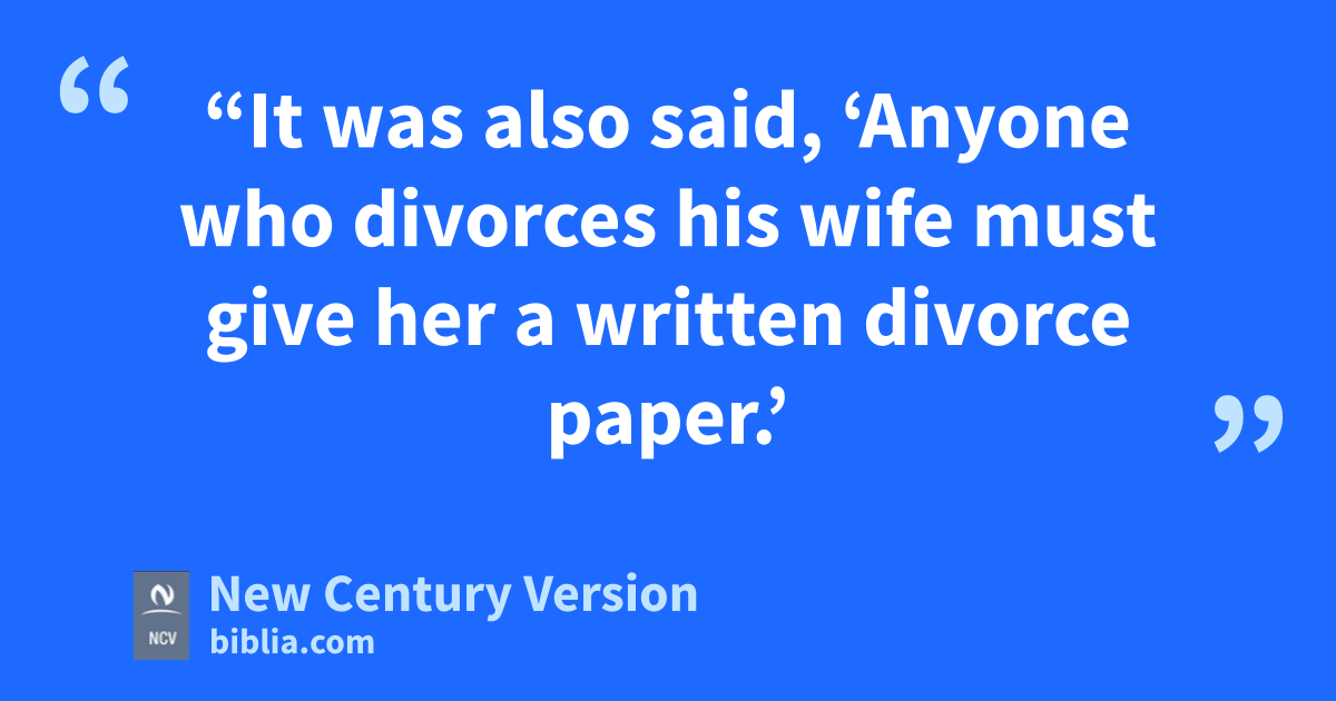 31 “It was also said, ‘Anyone who divorces his wife must give her a written divorce paper.’ n 32 But I tell you that anyone who divorces his wife forces her to be guilty of adultery. The only reason for a man to divorce his wife is if she has sexual relations with another man. And anyone who marries that divorced woman is guilty of adultery.