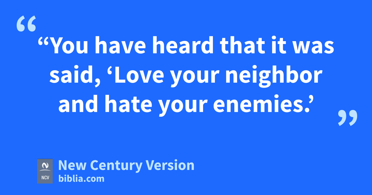 43 “You have heard that it was said, ‘Love your neighbor n and hate your enemies.’ 44 But I say to you, love your enemies. Pray for those who hurt you. n 45 If you do this, you will be true children of your Father in heaven. He causes the sun to rise on good people and on evil people, and he sends rain to those who do right and to those who do wrong. 46 If you love only the people who love you, you will get no reward. Even the tax collectors do that. 47 And if you are nice only to your friends, you are no better than other people. Even those who don’t know God are nice to their friends. 48 So you must be perfect, just as your Father in heaven is perfect.