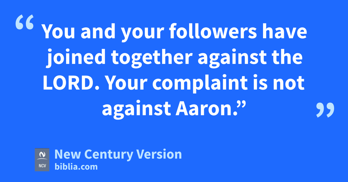 8 Moses also said to Korah, “Listen, you Levites. 9 The God of Israel has separated you from the rest of the Israelites. He brought you near to himself to do the work in the Lord’s Holy Tent and to stand before all the Israelites and serve them. Isn’t that enough? 10 He has brought you and all your fellow Levites near to himself, yet now you want to be priests. 11 You and your followers have joined together against the Lord. Your complaint is not against Aaron.”
