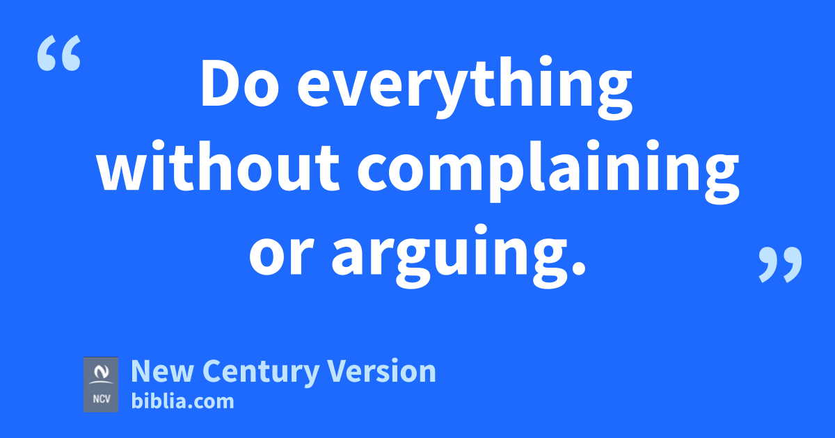 14 Do everything without complaining or arguing. 15 Then you will be innocent and without any wrong. You will be God’s children without fault. But you are living with crooked and mean people all around you, among whom you shine like stars in the dark world. 16 You offer the teaching that gives life. So when Christ comes again, I can be happy because my work was not wasted. I ran the race and won.