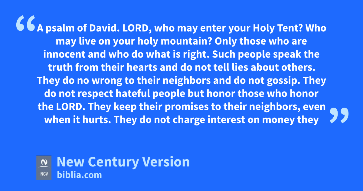 15 Lord, who may enter your Holy Tent?