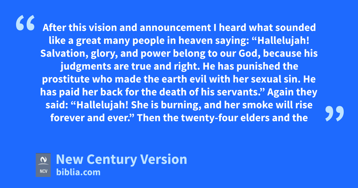 19 After this vision and announcement I heard what sounded like a great many people in heaven saying: