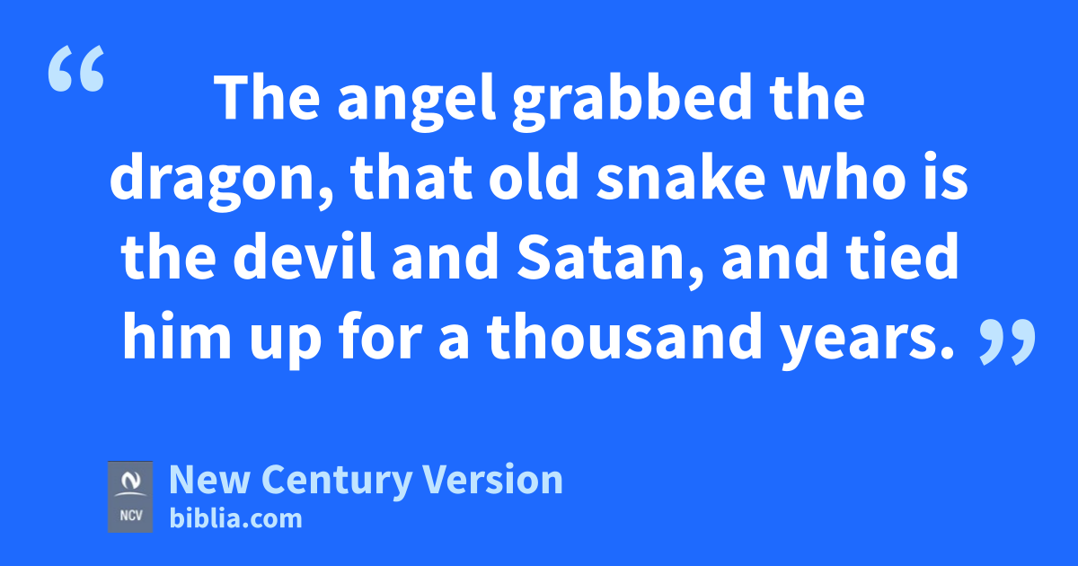 20 I saw an angel coming down from heaven. He had the key to the bottomless pit and a large chain in his hand. 2 The angel grabbed the dragon, that old snake who is the devil and Satan, and tied him up for a thousand years. 3 Then he threw him into the bottomless pit, closed it, and locked it over him. The angel did this so he could not trick the people of the earth anymore until the thousand years were ended. After a thousand years he must be set free for a short time.