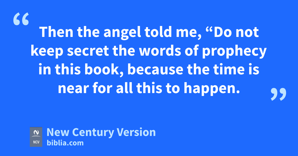 10 Then the angel told me, “Do not keep secret the words of prophecy in this book, because the time is near for all this to happen. 11 Let whoever is doing evil continue to do evil. Let whoever is unclean continue to be unclean. Let whoever is doing right continue to do right. Let whoever is holy continue to be holy.”