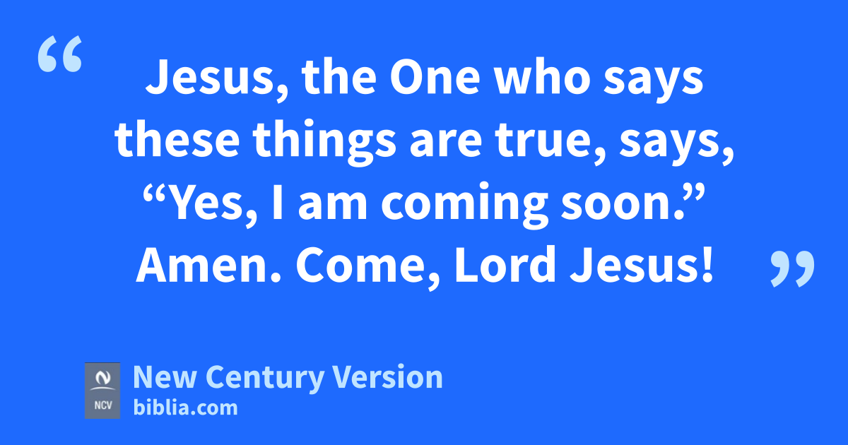 20 Jesus, the One who says these things are true, says, “Yes, I am coming soon.”