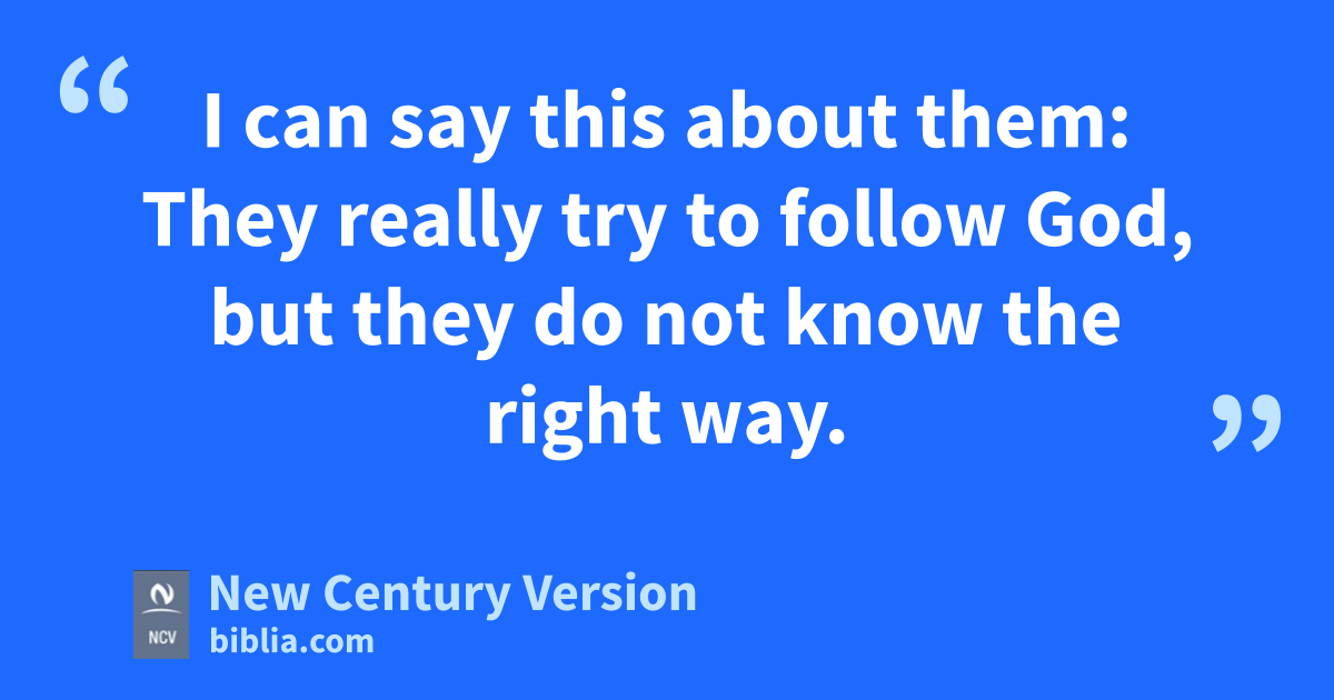 10 Brothers and sisters, the thing I want most is for all the Jews to be saved. That is my prayer to God. 2 I can say this about them: They really try to follow God, but they do not know the right way. 3 Because they did not know the way that God makes people right with him, they tried to make themselves right in their own way. So they did not accept God’s way of making people right. 4 Christ ended the law so that everyone who believes in him may be right with God.