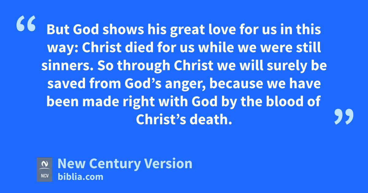 9 So through Christ we will surely be saved from God’s anger, because we have been made right with God by the blood of Christ’s death. 10 While we were God’s enemies, he made us his friends through the death of his Son. Surely, now that we are his friends, he will save us through his Son’s life. 11 And not only that, but now we are also very happy in God through our Lord Jesus Christ. Through him we are now God’s friends again.