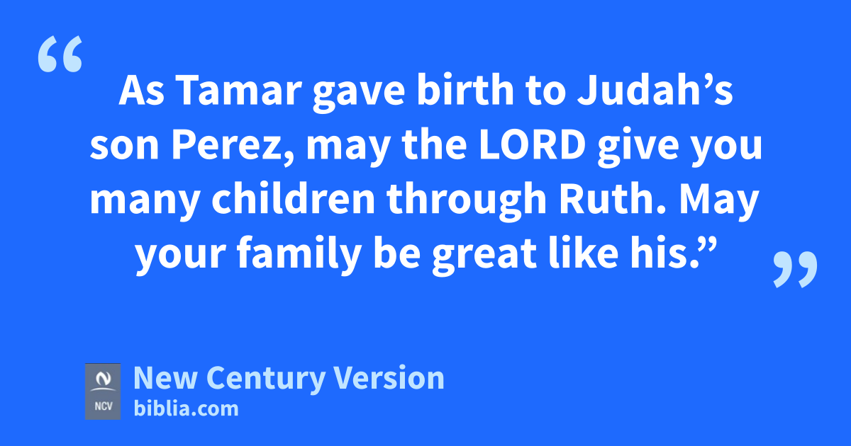 11 So all the people and elders who were at the city gate said, “We are witnesses. May the Lord make this woman, who is coming into your home, like Rachel and Leah, who had many children and built up the people of Israel. May you become powerful in the district of Ephrathah and famous in Bethlehem. 12 As Tamar gave birth to Judah’s son Perez, n may the Lord give you many children through Ruth. May your family be great like his.”