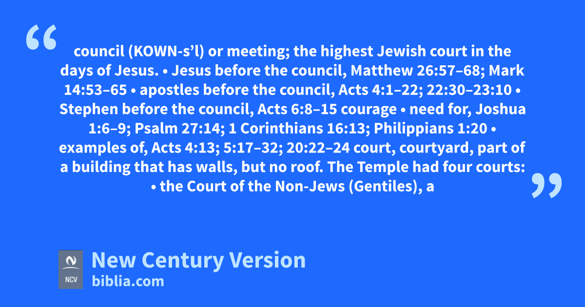 council (KOWN-s’l) or meeting; the highest Jewish court in the days of Jesus.