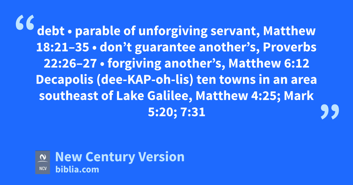 Decapolis (dee-KAP-oh-lis) ten towns in an area southeast of Lake Galilee, Matthew 4:25; Mark 5:20; 7:31