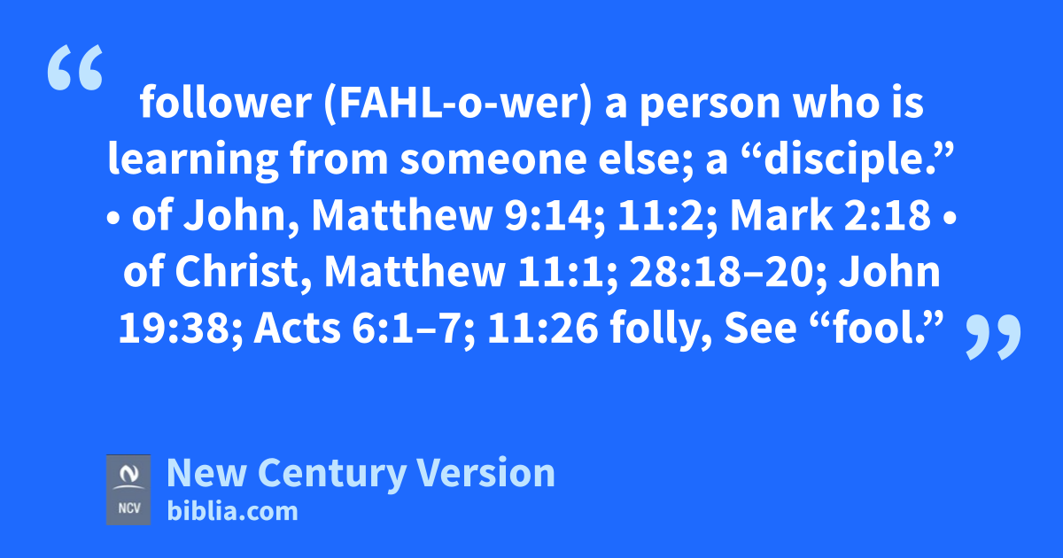 follower (FAHL-o-wer) a person who is learning from someone else; a “disciple.”