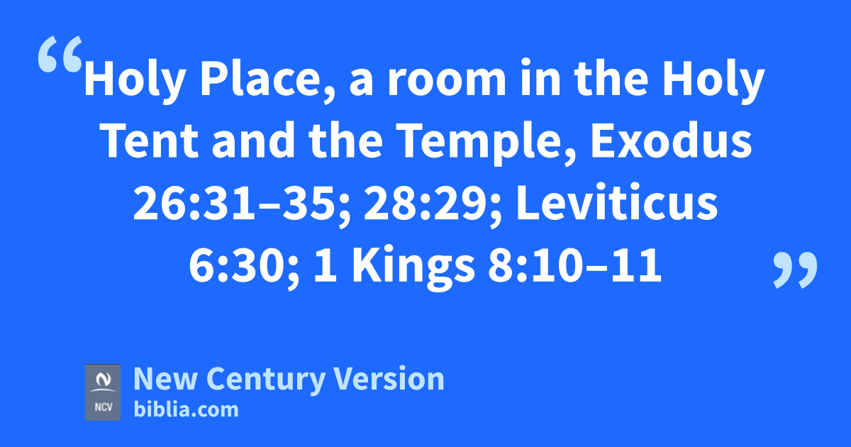 Holy Place, a room in the Holy Tent and the Temple, Exodus 26:31–35; 28:29; Leviticus 6:30; 1 Kings 8:10–11
