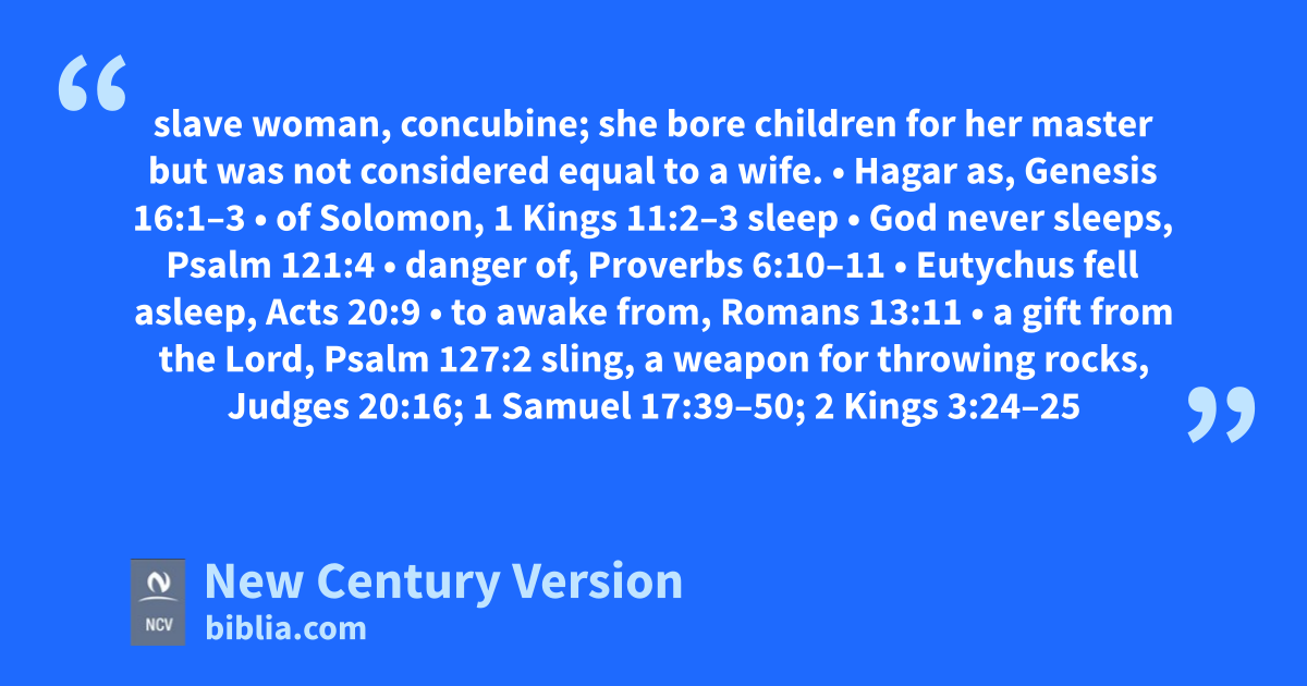 slave woman, concubine; she bore children for her master but was not considered equal to a wife.