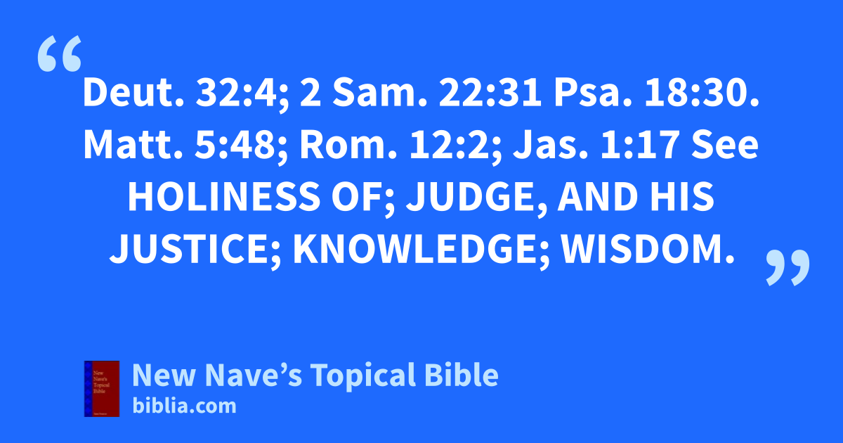 Perfection of: Deut. 32:4; 2 Sam. 22:31 Psa. 18:30. Matt. 5:48; Rom. 12:2; Jas. 1:17 See Holiness of; Judge, and His Justice; Knowledge; Wisdom.
