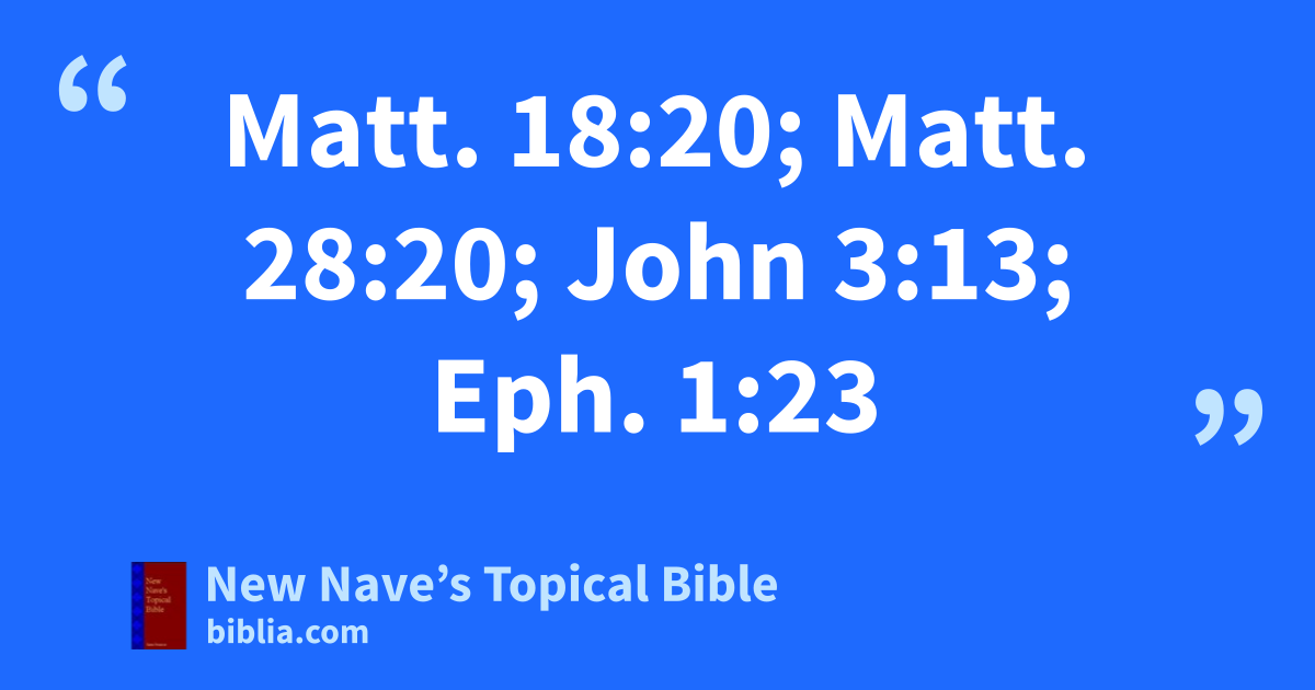 Omnipresence of: Matt. 18:20; Matt. 28:20; John 3:13; Eph. 1:23