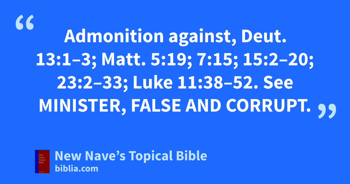 False: Admonition against, Deut. 13:1–3; Matt. 5:19; 7:15; 15:2–20; 23:2–33; Luke 11:38–52. See Minister, False and Corrupt.