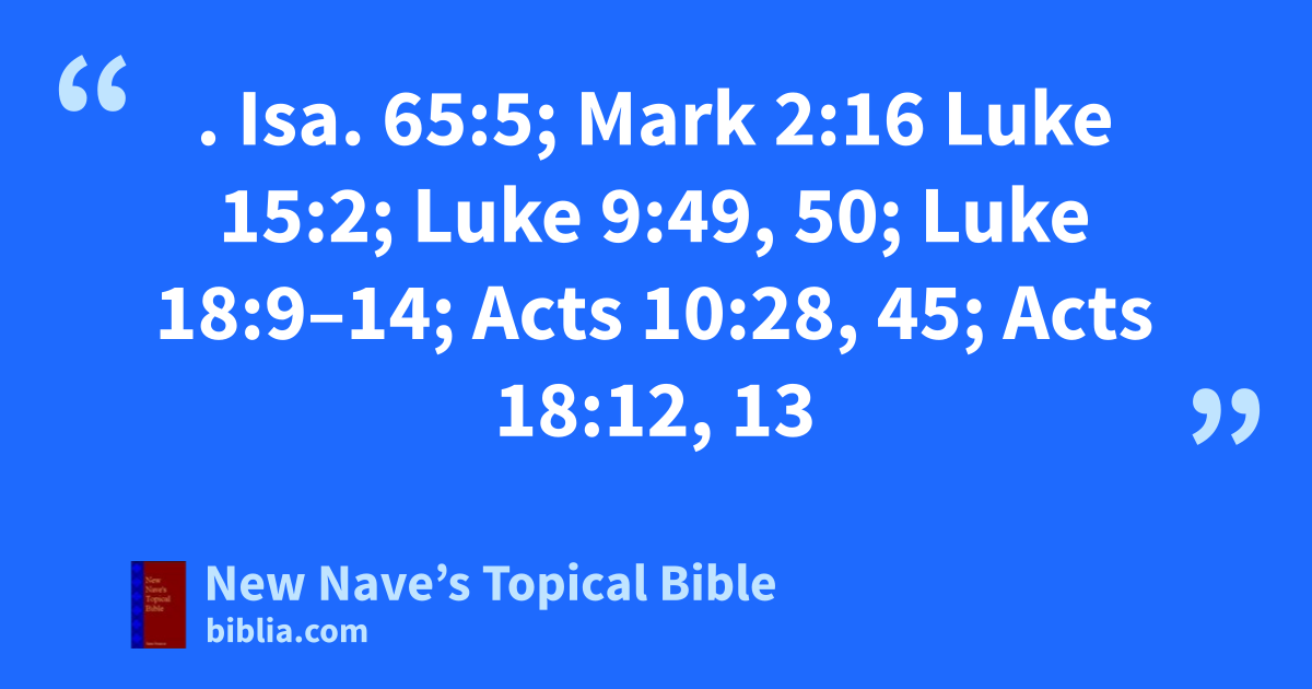 BIGOTRY. Isa. 65:5; Mark 2:16 Luke 15:2; Luke 9:49, 50; Luke 18:9–14; Acts 10:28, 45; Acts 18:12, 13