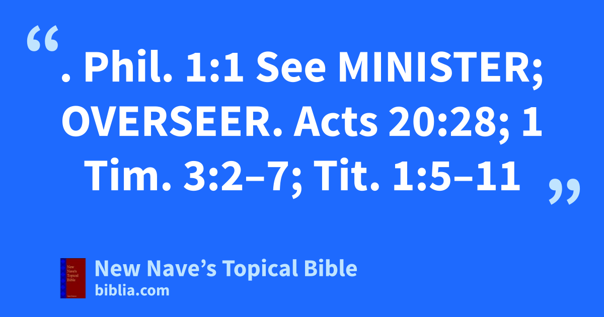 BISHOP. Phil. 1:1 See Minister; Overseer. Acts 20:28; 1 Tim. 3:2–7; Tit. 1:5–11