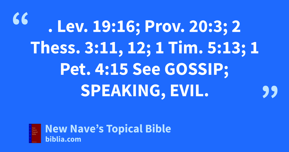 BUSYBODY. Lev. 19:16; Prov. 20:3; 2 Thess. 3:11, 12; 1 Tim. 5:13; 1 Pet. 4:15 See Gossip; Speaking, Evil.