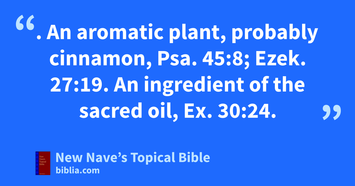 CASSIA. An aromatic plant, probably cinnamon, Psa. 45:8; Ezek. 27:19. An ingredient of the sacred oil, Ex. 30:24.