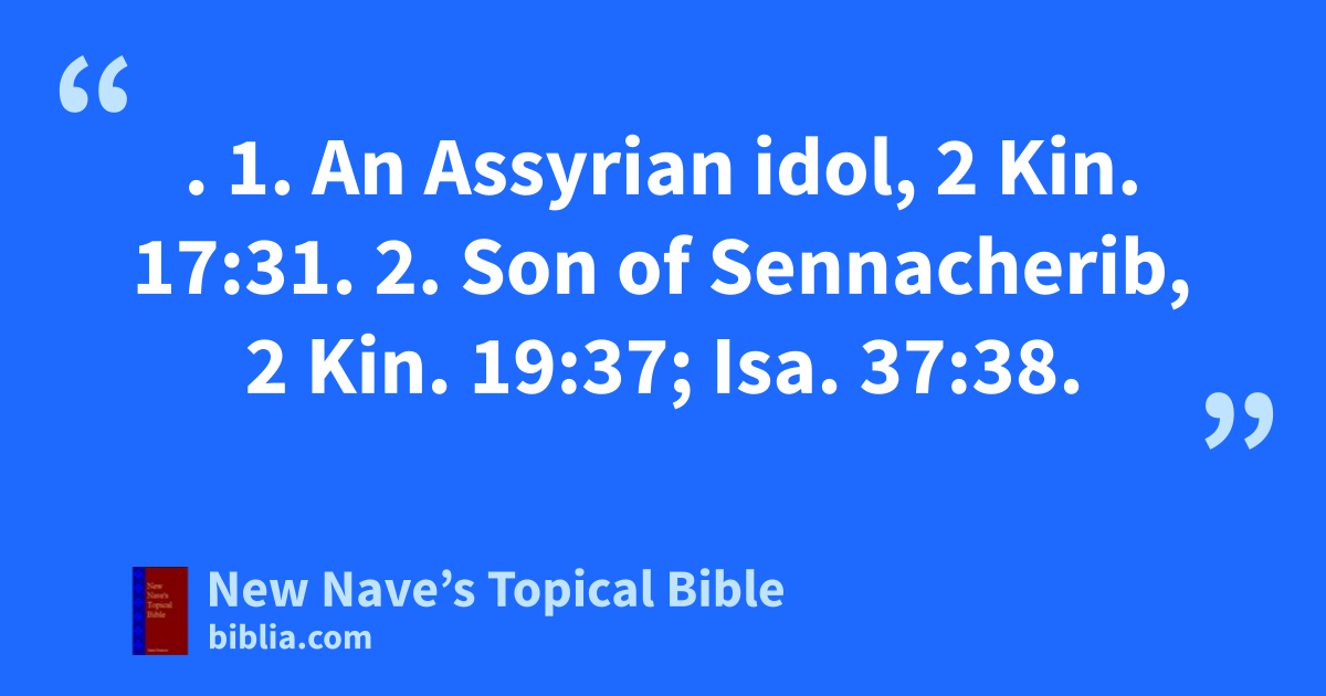 ADRAMMELECH. 1. An Assyrian idol, 2 Kin. 17:31. 2. Son of Sennacherib, 2 Kin. 19:37; Isa. 37:38.
