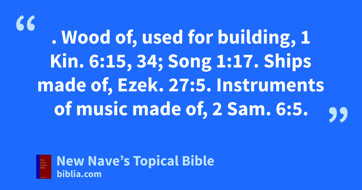 FIR TREE. Wood of, used for building, 1 Kin. 6:15, 34; Song 1:17. Ships made of, Ezek. 27:5. Instruments of music made of, 2 Sam. 6:5.