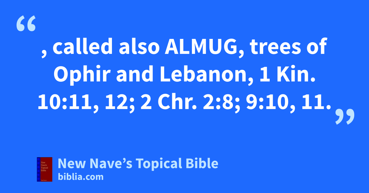 ALGUM, called also Almug, trees of Ophir and Lebanon, 1 Kin. 10:11, 12; 2 Chr. 2:8; 9:10, 11.