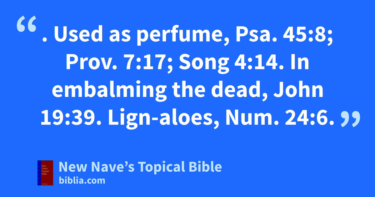 ALOES. Used as perfume, Psa. 45:8; Prov. 7:17; Song 4:14. In embalming the dead, John 19:39. Lign-aloes, Num. 24:6.
