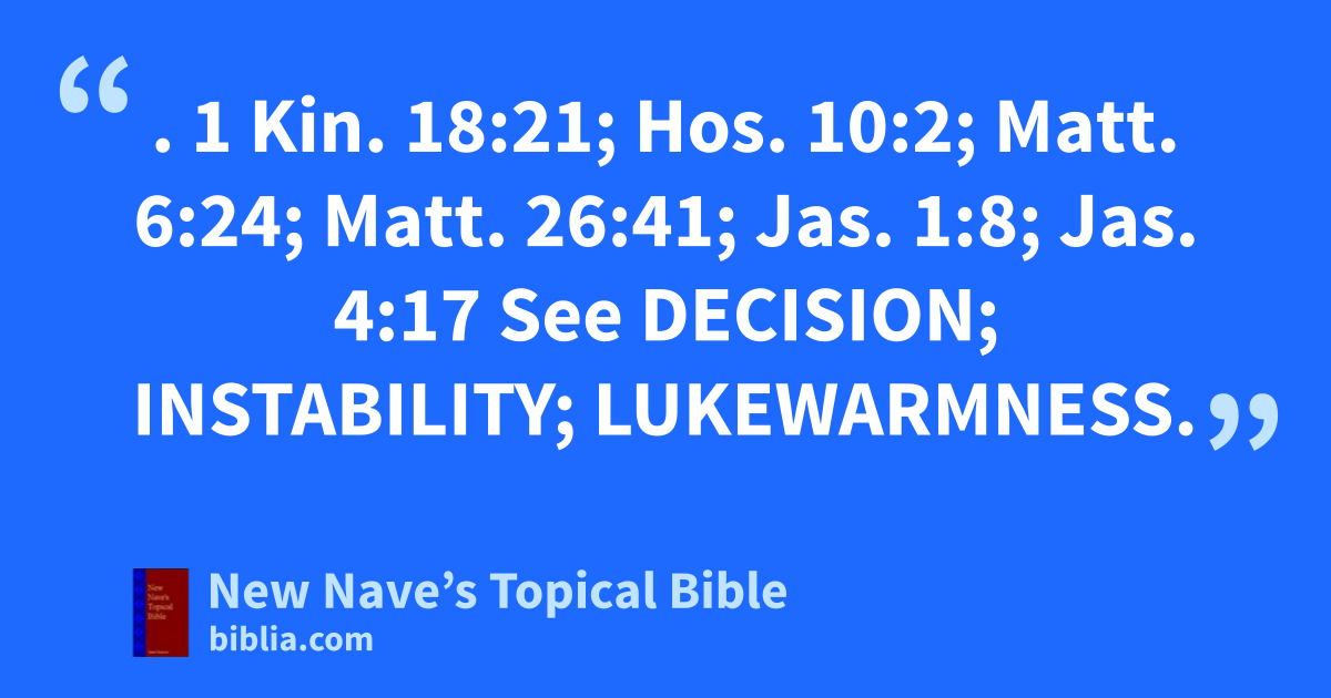 INDECISION. 1 Kin. 18:21; Hos. 10:2; Matt. 6:24; Matt. 26:41; Jas. 1:8; Jas. 4:17 See Decision; Instability; Lukewarmness.