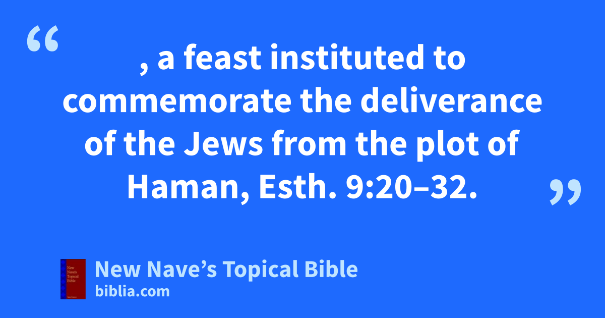 PURIM, a feast instituted to commemorate the deliverance of the Jews from the plot of Haman, Esth. 9:20–32.