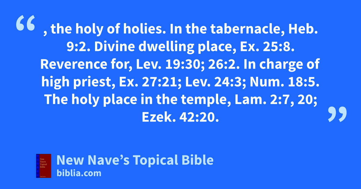 SANCTUARY, the holy of holies. In the tabernacle, Heb. 9:2. Divine dwelling place, Ex. 25:8. Reverence for, Lev. 19:30; 26:2. In charge of high priest, Ex. 27:21; Lev. 24:3; Num. 18:5. The holy place in the temple, Lam. 2:7, 20; Ezek. 42:20.