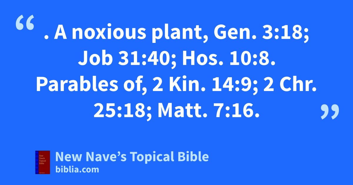 THISTLE. A noxious plant, Gen. 3:18; Job 31:40; Hos. 10:8. Parables of, 2 Kin. 14:9; 2 Chr. 25:18; Matt. 7:16.