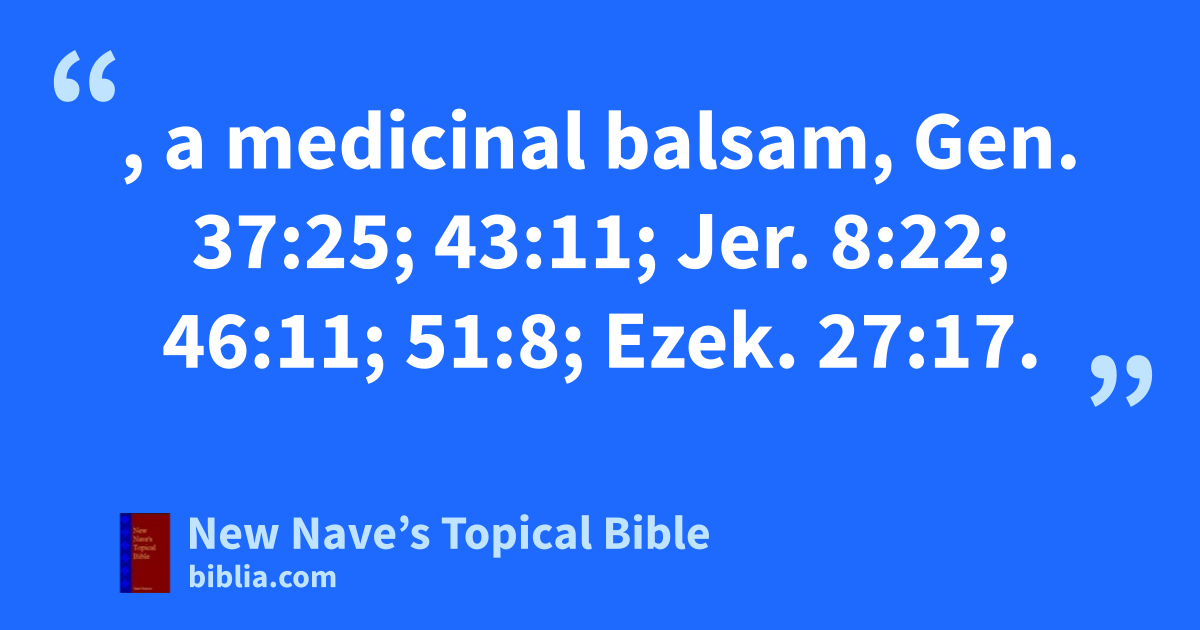 BALM, a medicinal balsam, Gen. 37:25; 43:11; Jer. 8:22; 46:11; 51:8; Ezek. 27:17.