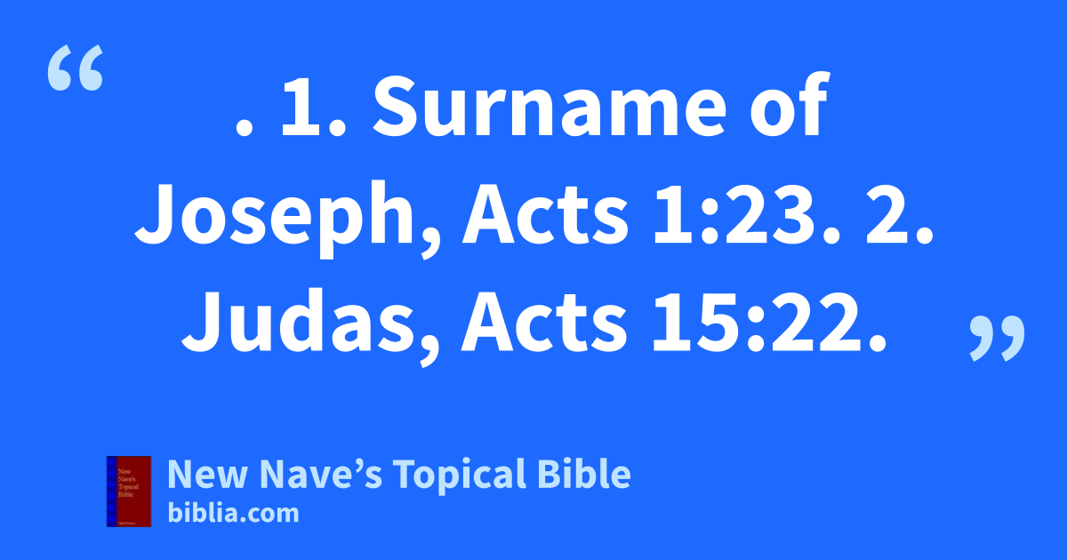 BARSABAS. 1. Surname of Joseph, Acts 1:23. 2. Judas, Acts 15:22.