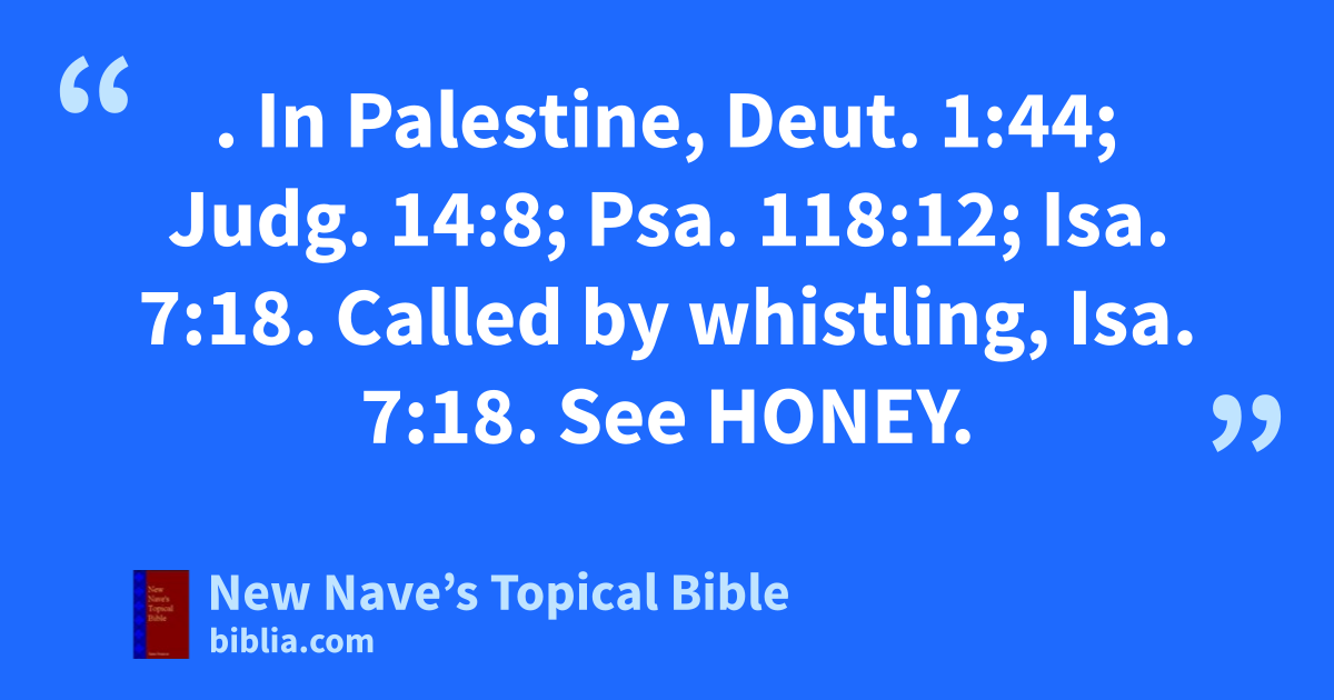 BEE. In Palestine, Deut. 1:44; Judg. 14:8; Psa. 118:12; Isa. 7:18. Called by whistling, Isa. 7:18. See Honey.