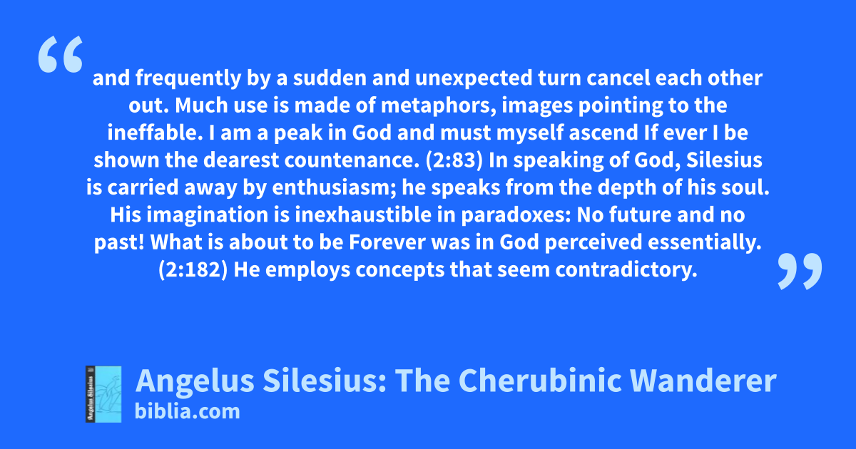 This volume contains poetic texts by one of the great German mystics of the seventeenth century, Angelus Silesius (1624–1677). These texts, written in the form of the epigram, are still used today for contemplative prayer and as part of German Christmas folklore.