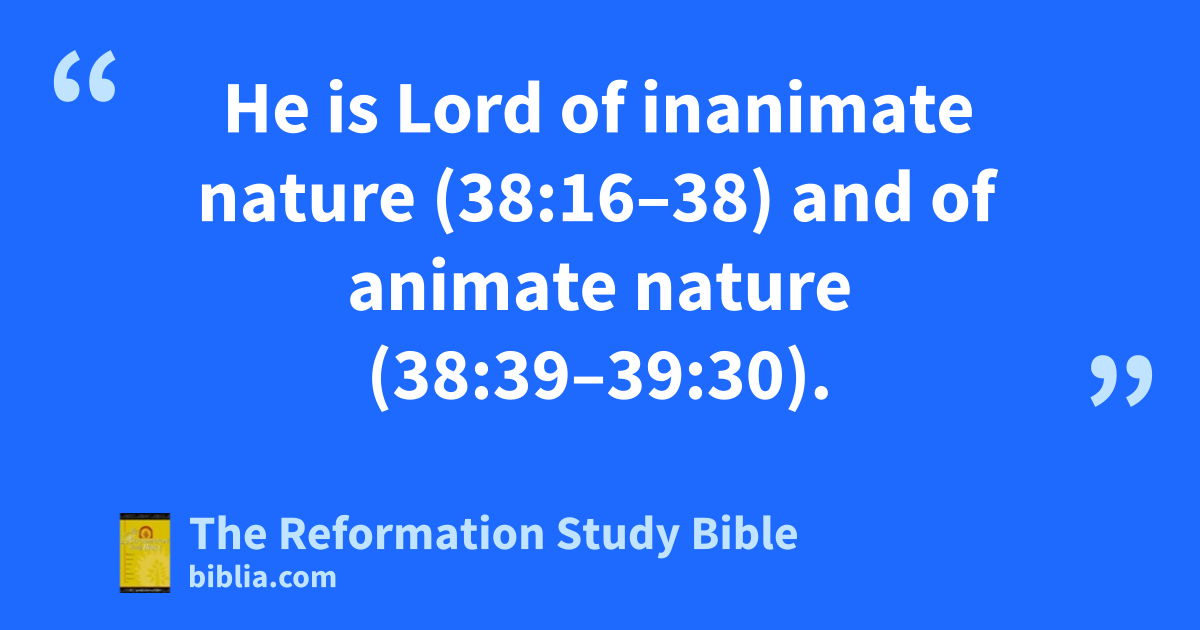 He is Lord of inanimate nature (38:16–38) and of animate nature (38:39–39:30).