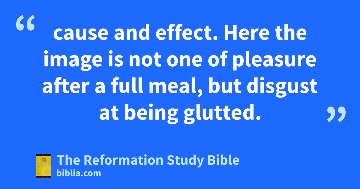 cause and effect. Here the image is not one of pleasure after a full meal, but disgust at being glutted.