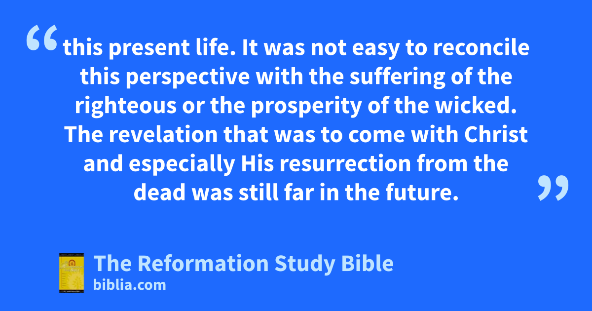 this present life. It was not easy to reconcile this perspective with the suffering of the righteous or the prosperity of the wicked. The revelation that was to come with Christ and especially His resurrection from the dead was still far in the future.