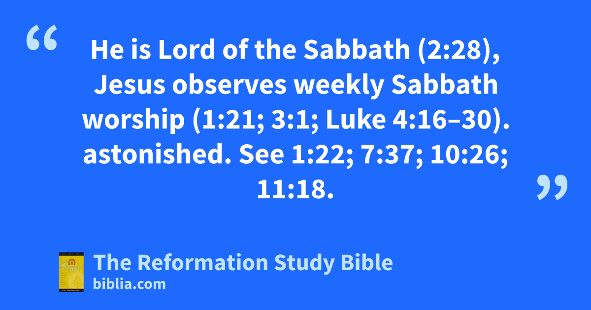 He is Lord of the Sabbath (2:28), Jesus observes weekly Sabbath worship (1:21; 3:1; Luke 4:16–30). astonished. See 1:22; 7:37; 10:26; 11:18.