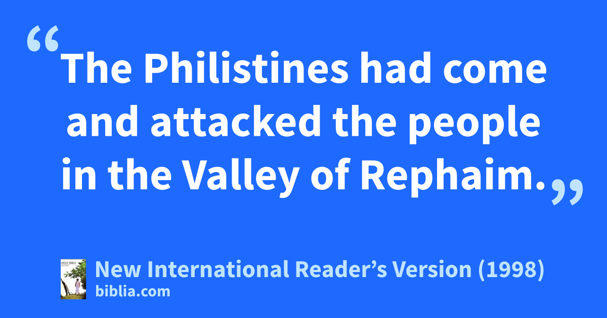 8The Philistines heard that David had been anointed king over the entire nation of Israel. So their whole army went to look for him. But David heard about it. He went out to where they were. 9The Philistines had come and attacked the people in the Valley of Rephaim.
