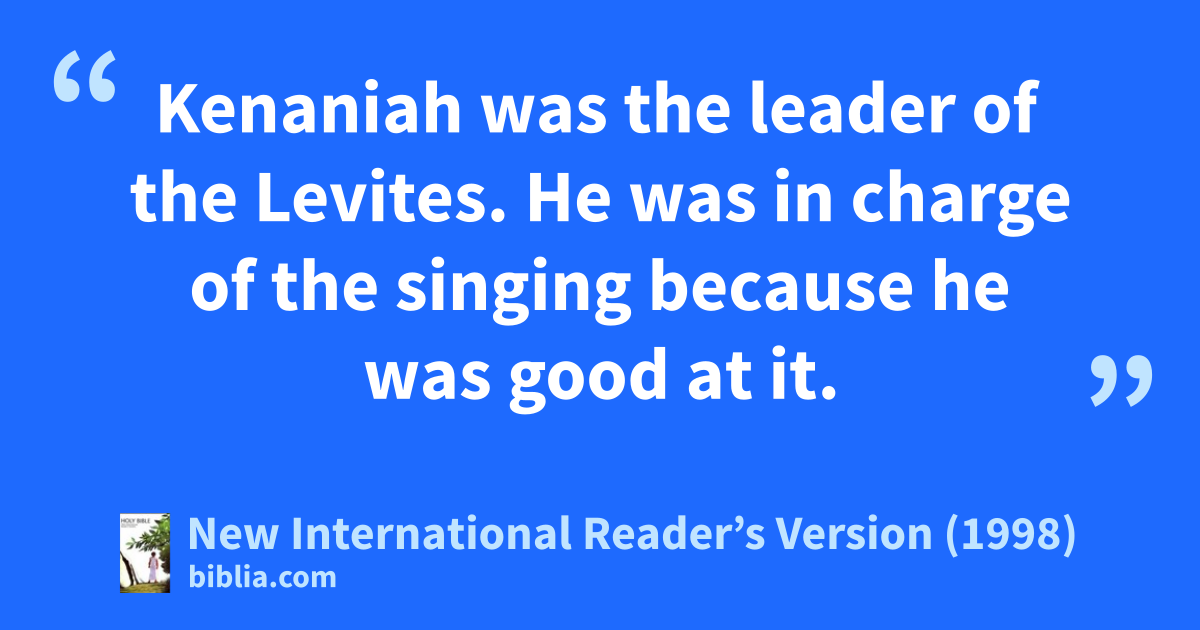 22Kenaniah was the leader of the Levites. He was in charge of the singing because he was good at it.