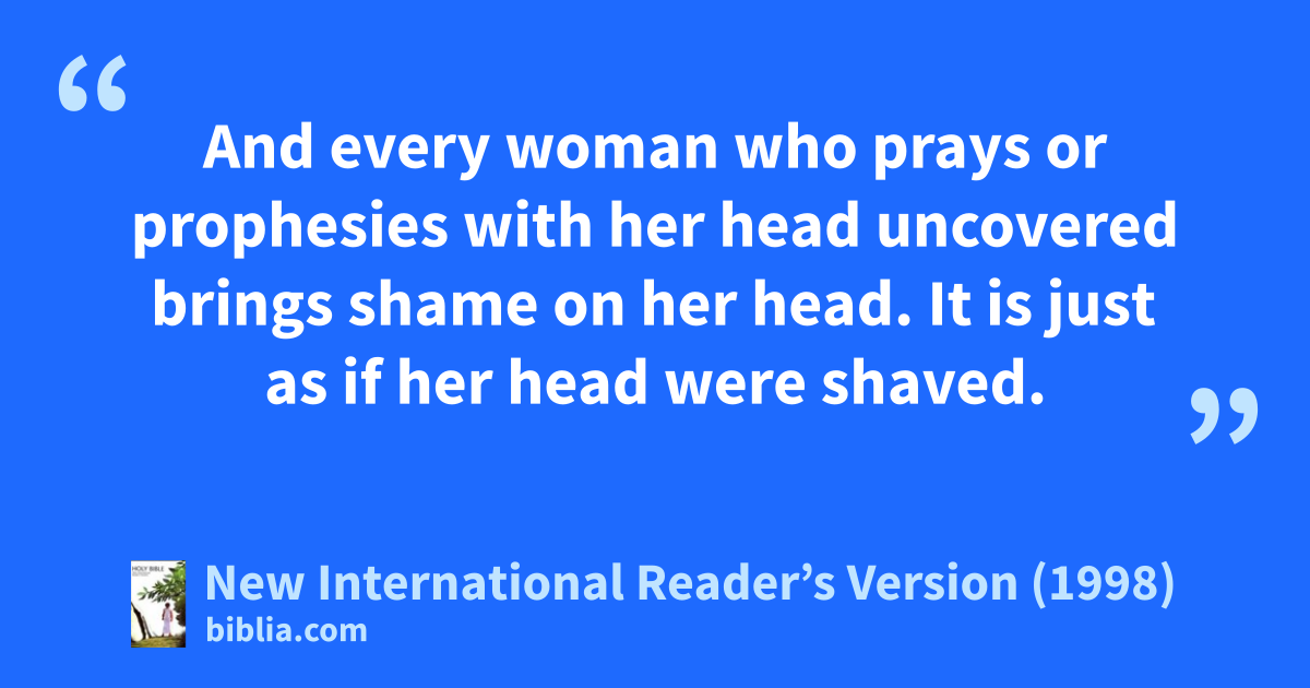 3Now I want you to know that the head of every man is Christ. The head of the woman is the man. And the head of Christ is God. 4Every man who prays or prophesies with his head covered brings shame on his head. 5And every woman who prays or prophesies with her head uncovered brings shame on her head. It is just as if her head were shaved.
