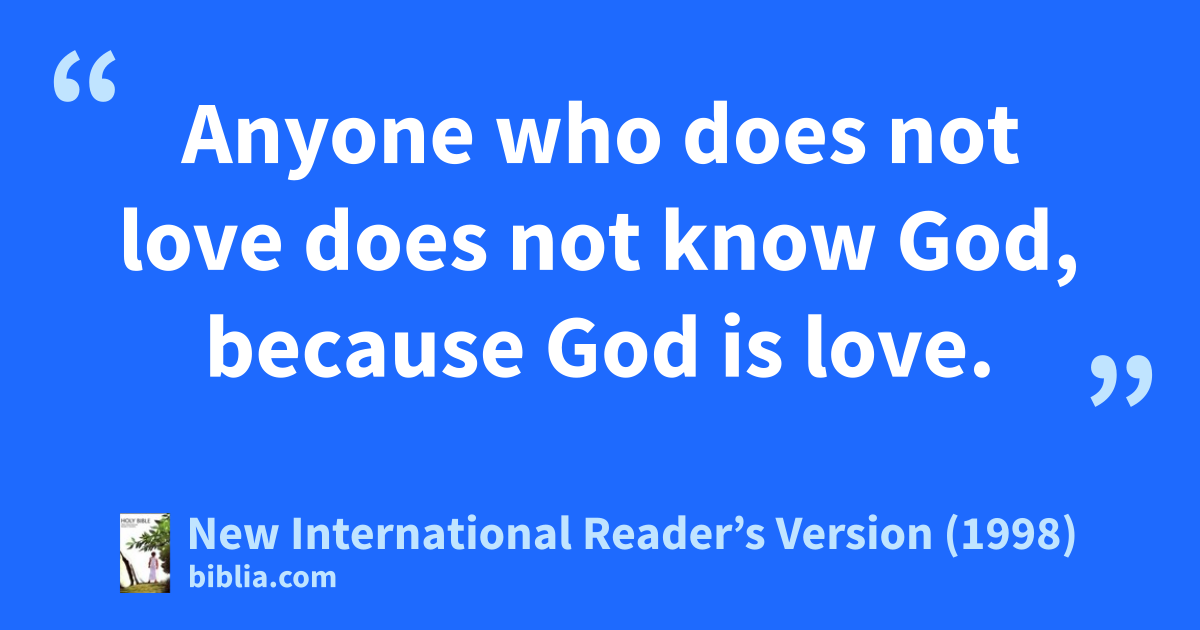 7Dear friends, let us love one another, because love comes from God. Everyone who loves has been born again because of what God has done. That person knows God. 8Anyone who does not love does not know God, because God is love.