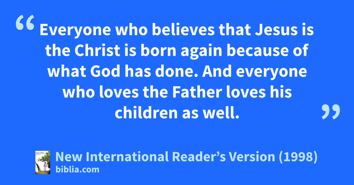 5 Everyone who believes that Jesus is the Christ is born again because of what God has done. And everyone who loves the Father loves his children as well.