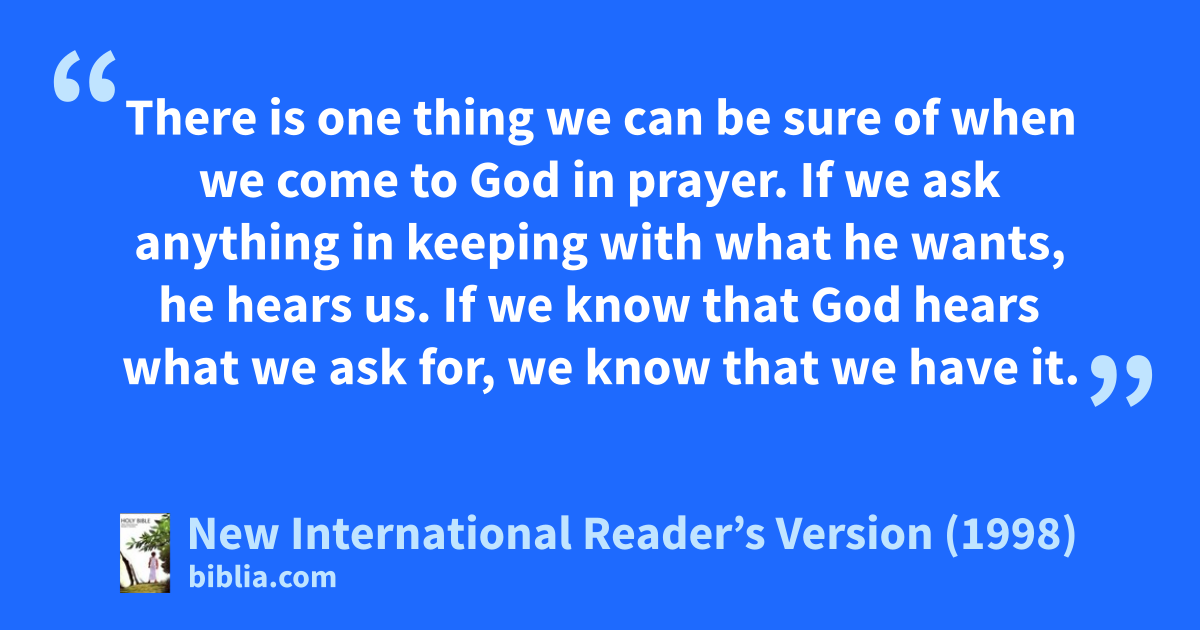 14There is one thing we can be sure of when we come to God in prayer. If we ask anything in keeping with what he wants, he hears us. 15If we know that God hears what we ask for, we know that we have it.