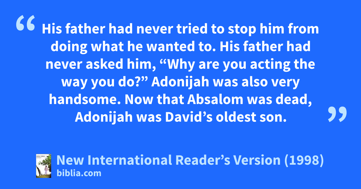 Adonijah was also very handsome. Now that Absalom was dead, Adonijah was David’s oldest son.