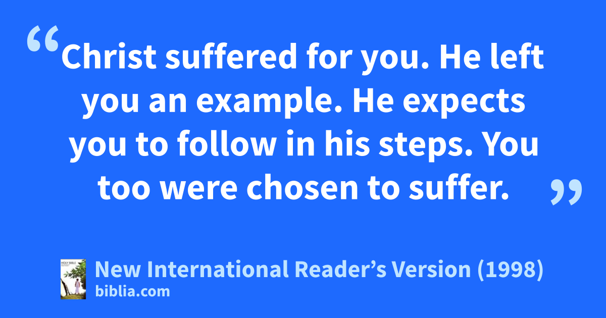 21Christ suffered for you. He left you an example. He expects you to follow in his steps. You too were chosen to suffer. 22Scripture says,