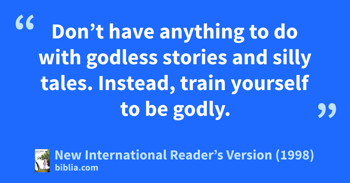 7Don’t have anything to do with godless stories and silly tales. Instead, train yourself to be godly. 8Training the body has some value. But being godly has value in every way. It promises help for the life you are now living and the life to come.